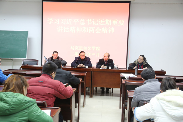 学院院长肖宗志强调学院教师要加强马克思主义理论理论学习、理论研究、理论宣传和理论传播;要注重学习的时效性,及时关注中国共产党网、人民网、新华网和光明网等网站;教师要先学、多学、深学,以高度的责任心深化思想政治理论课的教育教学。