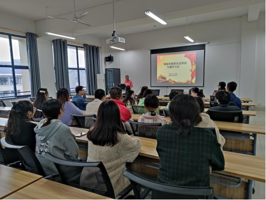 11月5日下午,伟德betvlctor1946源于英国党总支书记何小英在雨母校区崇德楼418主持开展了学习“扶贫好书记”邹海贵教授优秀事迹,学院全体无课教师和部分研究生参加了学习。