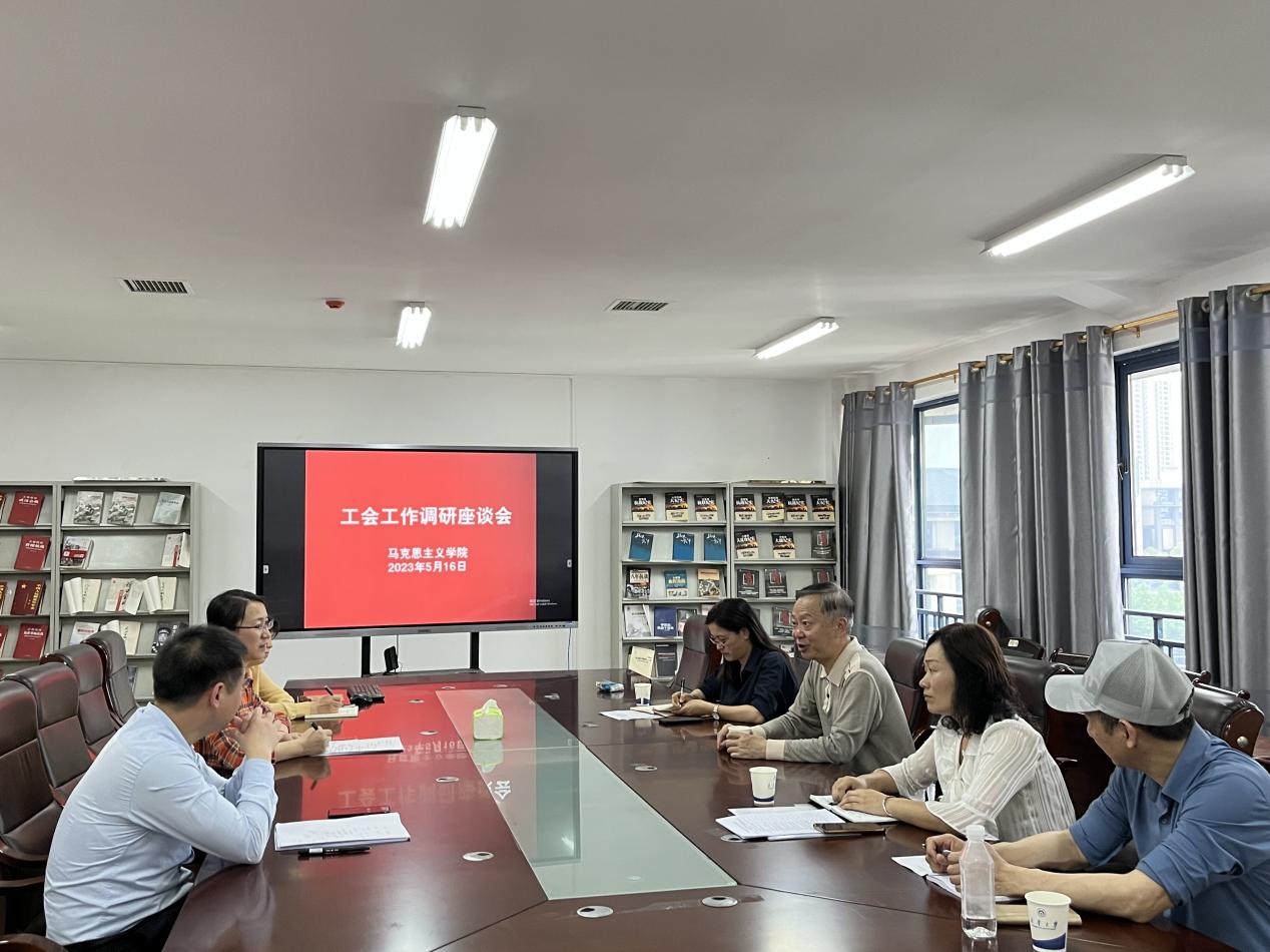 接着,张峰林感谢校工会对学院工会工作的支持和重视,认为校工会领导指导有高度、为职工办实事有温度、调研工作有深度、活动开展有厚度。同时,汇报了学院职工之家建设、马院特色活动开展、民主管理建设、岗位练兵、关心关爱教职工等方面的亮点和具体举措;表示将进一步创建模范职工之家,进一步发挥工会组织的桥梁纽带作用,为职工排忧解难。周江平对学院工会活动开展情况作了补充。