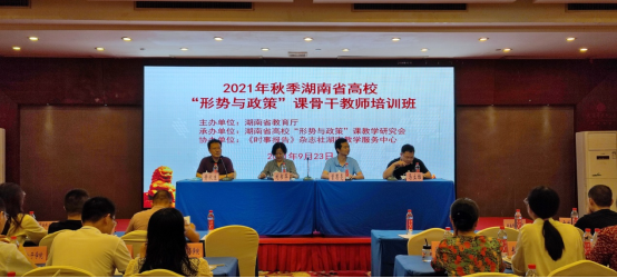 2021年9月23日至24日,2021年秋季全省高校“形势与政策”课骨干教师培训班在长沙芙蓉华天酒店隆重开班。本次培训班由湖南省教育厅主办、湖南省高校“形势与政策”课教学研究会(伟德betvlctor1946源于英国为会长单位)承办,《时事报告》杂志社湖南教学服务中心联合协办。