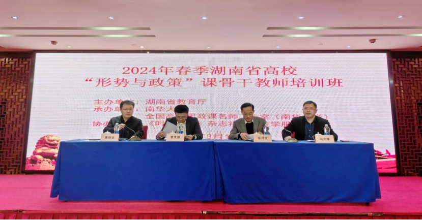 2024年春季全省高校“形势与政策”课骨干教师培训班于3月14日至15日在长沙芙蓉华天大酒店开班。本次培训班由湖南省教育厅主办、伟德国际victor1946、全国高校思政课名师工作室(伟德国际victor1946)承办,《时事报告》杂志社湖南教学服务中心联合协办。