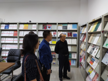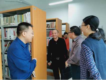 罗东云主席在黄秋生院长等的陪同下参观了学院阅览室
