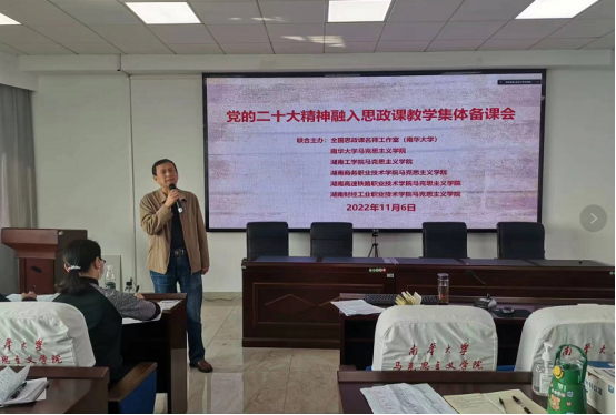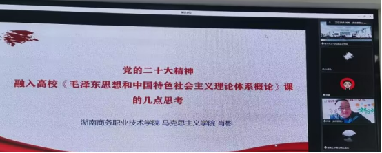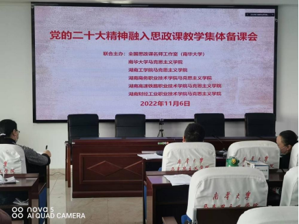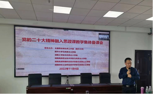 为深入学习宣传、贯彻落实党的二十大精神,全面深入推进党的二十大精神进教材、进课堂、进头脑,提升新时代大学生为全面建成社会主义现代化强国及为实现中华民族伟大复兴“中国梦”而努力的自觉性和自信心,增强思政课教学的时代性、针对性和实效性。11月6日,伟德betvlctor1946源于英国与湖南工学院伟德betvlctor1946源于英国、湖南商务职业技术学院伟德betvlctor1946源于英国、湖南高速铁路职业技术学院伟德betvlctor1946源于英国和湖南财经工业职业技术学院伟德betvlctor1946源于英国联合开展党的二十大精神融入思政课教学的集体备课活动。