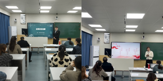 第二环节,参赛者按照抽签顺序进行微课教学试讲。所有参赛者都要在10-15分钟内讲授个人所选教材的相关内容8位参赛者试讲内容各不相同,不仅有事物的普遍联系、否定之否定规律、对立统一规律等《马克思主义基本原理》相关知识点有全面依法治国、构建新发展格局、实现中华民族伟大复兴的中国梦等《习近平新时代中国特色社会主义思想》相关主题,还有在实现中国梦的实践中放飞青春梦、理想信念的内涵及重要性等《思想道德与法治》课程相关知识点。