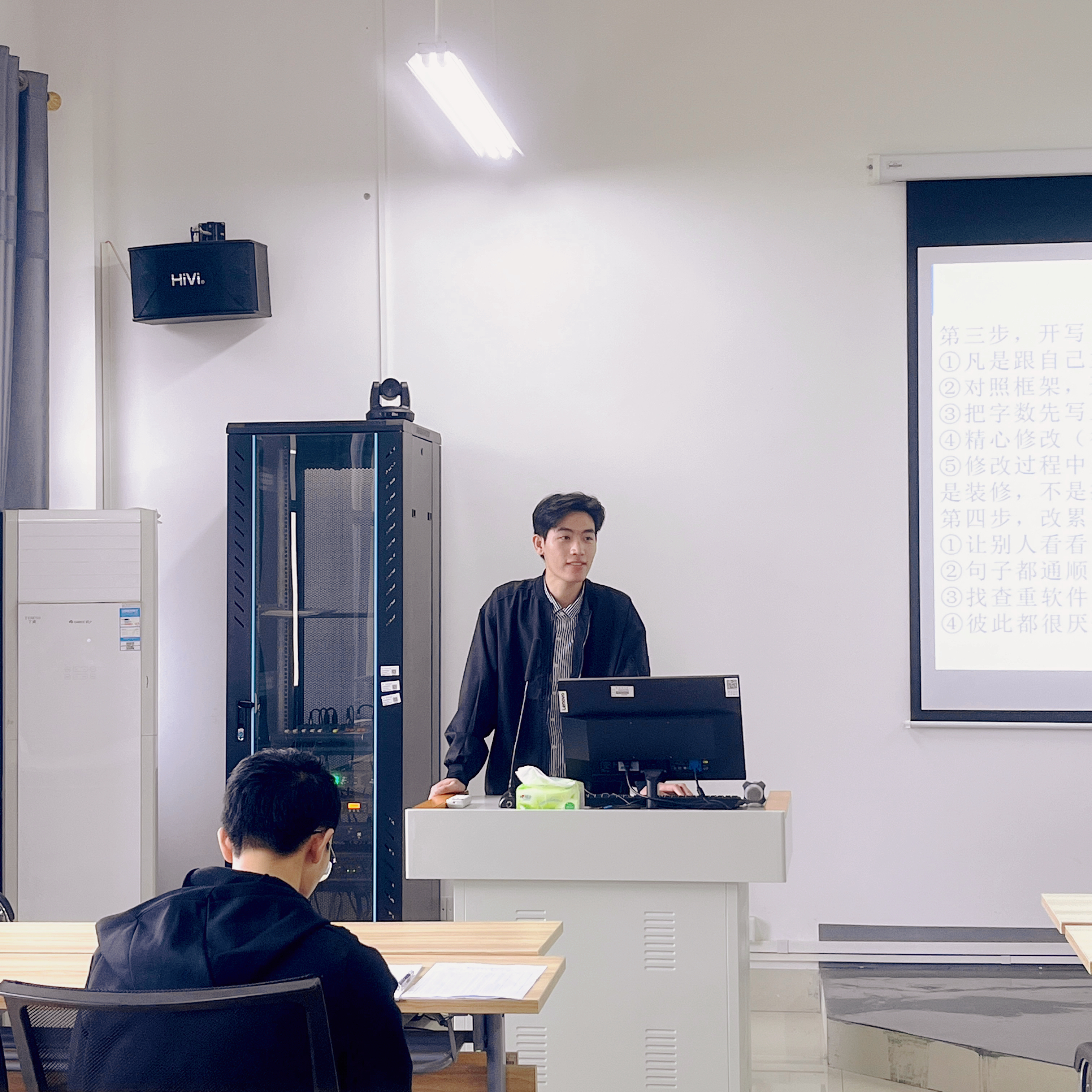韦烨同学结合自身经验,围绕“文章如何写、文章怎么投以及研究生生活怎么适应”三个方面来进行分享。首先,在文章如何写方面,韦烨同学提出“四个步骤”,第一步要想好写什么,可以跟着导师方向走或选择自己感兴趣的研究方向,也可根据论坛、比赛征文的主题来确定选题。第二步拟定框架,要注意框架逻辑上的连贯性,既要标准得体,又要适当创新、与时俱进。第三步开始写作,要大量搜集跟自己文章主题相关的资料,接着对照框架开始填充内容,写好后要进行精心修改,确保行文逻辑规范、言辞得当。第四步根据同学、导师的意见进行进一步的改进。其次,在文章怎么投方面,韦烨同学建议同学们先到万维书刊网寻找符合条件的期刊,投稿后要做好日期标记和投稿标记,尽量避免一稿多投的情况。最后,关于研究生生活怎么适应的问题,韦烨同学引用了哲学家海德格尔的“存在与此在”概念,告诉同学们每个人都有机会重塑自己、改变自己,从而成为自己想成为的人。