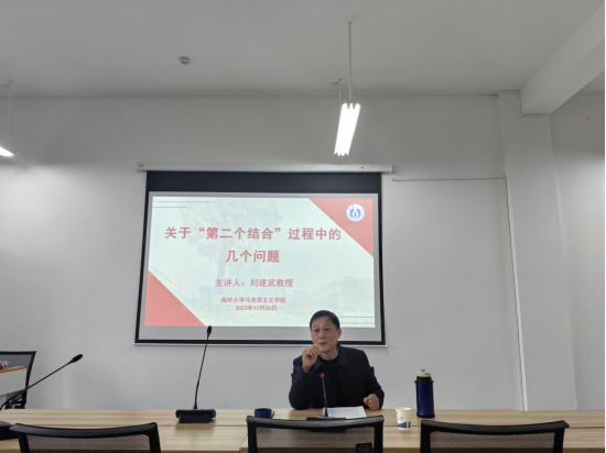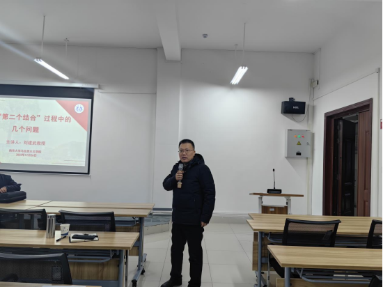 12月26日下午,应伟德betvlctor1946源于英国邀请,湖南省社会科学院原院长、党组书记、湖南省人民政府参事刘建武教授在伟德国际victor1946雨母校区崇德楼418报告厅作了题为《关于“第二个结合”过程中的几个问题》的学术报告。本次学术报告由黄秋生院长主持,党委副书记张峰林,副院长周江平出席,我院部分教师和在校研究生积极参加了此次学术活动。