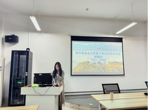 第二个环节由本次征文活动的获奖代表进行论文和写作心得的分享。最先发言的是张寒雪同学,她从数字资本主义的概念、数字资本主义背景下交往异化的现实表征、成因探析等方面展开,详细介绍了其获奖论文《数字资本主义背景下的交往异化及消解路径》。随后,张翼飞同学从选题历程、正文概述、总结反思三个方面详细介绍了其论文《泛娱乐营销对大学生消费观的误导及矫正研究》,使人受益颇丰。紧接着,徐潇雨同学也用幽默风趣的表达向大家阐述了其论文《干预主义视域下机器学习的可解释性探析》,他从如何选题、如何运用自然科学文献入手进行讲解,将复杂的理论用诙谐的表达呈现出来,使人印象深刻。随后,李洋同学、罗静同学、罗玟同学以及来自衡阳师范学院的李灵宇同学也相继作了汇报,分别从选题、写作技巧、学习经验以及论文的具体内容等方面进行阐述,为同学们以后的写作提供了诸多宝贵经验。