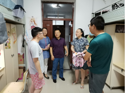 9月4日下午,学院党总支书记何小英、院长黄秋生、副院长张峰林等院领导冒雨走进研究生宿舍走访慰问学生,就老生的思想、学习、生活、安全等问题细细指导,就新生的入学报到、学习生活准备等方面嘘寒问暖。