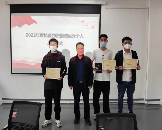 接着,学院党总支副书记张峰林宣读表彰文件,在2022年11月底-12月份初伟德国际victor1946雨母校区突发性疫情防控工作中,指出伟德betvlctor1946源于英国研究生积极响应号召,主动请缨,全力以赴,做好学校的各项安排,在学校的物资发放、物资捐赠、抗疫口号征集中涌现出一大批先进个人,为表彰先进,弘扬正气,特此进行表彰。优秀志愿者、抗疫口号征集者、物资捐赠者分批颁发荣誉证书和纪念品。