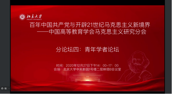 我院研究生查婉晴参与了选举新一届理事会、监事的投票,并在分论坛四青年学者专场中作了发言。我院研究生查婉晴的发言题目为《中国共产党党内文化建设:发展、特征与启示》,基于中国共产党近一百年的历史,通过对中国共产党党内文化的研究,梳理了其发展历程,从中总结出中国共产党党内文化的特征,并由此得出启示。分论坛四青年学者专场有来自北京大学、清华大学、中国人民大学等全国二十几所高校的硕士研究生和博士研究生二十余人,《世界社会主义研究动态》编辑部主任李强为分论坛四的总结汇报人。李强主任基于自己审稿的经历,向大家说明了在如今编辑部有大量来稿的情况下,更应注意选题和引证,要注重学术规范。