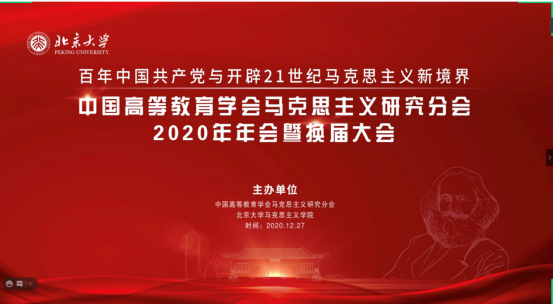 2020年12月27日,百年中国共产党与开辟21世纪马克思主义新境界中国高等教育学会马克思主义研究分会2020年年会暨换届大会在北京大学中关新园召开。中国高等教育学会副会长、教育部原副部长林蕙青出席会议并讲话。北京大学党委书记邱水平致开幕辞。中组部前部长张全景致贺信。教育部原副部长朱新均,中国政治学会会长、中国社科院原副院长李慎明,北京大学党委常务副书记于鸿君,党委副书记安钰峰,中国高等教育学会马克思主义研究分会首任会长、教育部社科中心原主任田心铭,中国政治经济学会会长、中国社科院学部委员程恩富,《求是》杂志社原副总编、中国红色文化研究会会长刘润为,《思想理论教育导刊》资深编审任大奎,北京大学伟德betvlctor1946源于英国教授仝华,中国高等教育学会马克思主义研究分会第四届理事会理事长、中国人民大学伟德betvlctor1946源于英国原院长郝立新等三十多位领导、专家和学者线下出席会议。全国多所高校伟德betvlctor1946源于英国院长、专家和学者二百余人通过视频连线出席会议。