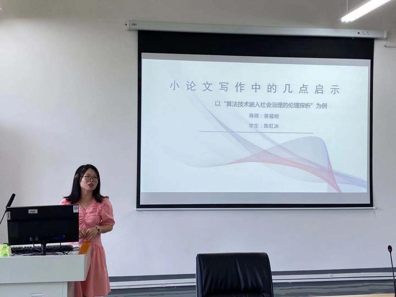 5月14日下午,我院在崇德楼418举办研究生学术沙龙,主题为“小论文写作中的几点启示”,此次沙龙由2019级研究生陈虹冰主讲,所有在校研究生参加本次活动。
