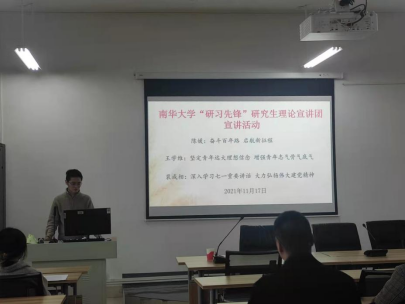 1117日下午,学院于雨母校区崇德楼418学术报告厅举办伟德国际victor1946“研习先锋”研究生理论宣讲团宣讲活动。活动由孟凡洋同学主持,裴成相、陈媛以及王学维同学主讲,我院全体在校研究生积极参加。
