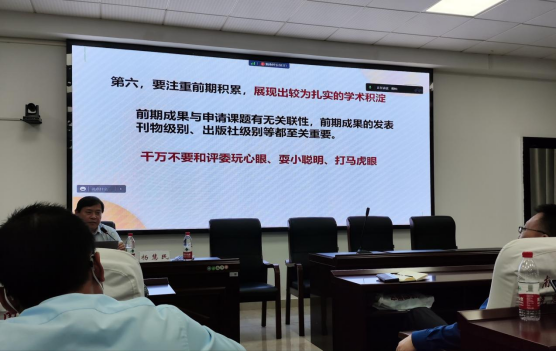杨教授指出选题内容的论证与呈现是项目申报的主体部分,更是展现学者学术功底的重要一环。老师们一定要秉持精益求精的工匠精神,在选题及内容上下大功夫,尤其要突出选题的出场逻辑,使课题立起来、站得住。同时,要展现出个人较为扎实的学术积淀,通过前期实实在在的成果和相关经验向专家证明个人研究能力和研究水平,从而赢得专家的青睐。