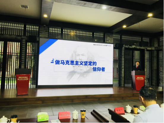 黄秋生教授在会上做了“做马克思主义坚定的信仰者”专题发言。他提出:作为高校思政课教师,要给当代青年心灵埋下真善美的种子,引导他们扣好人生第一粒扣子;作为马克思主义理论工作者,要进一步深挖衡阳红色资源、传承红色基因,深化马克思主义理论研究,进一步发挥马克思主义理论学科引领作用。