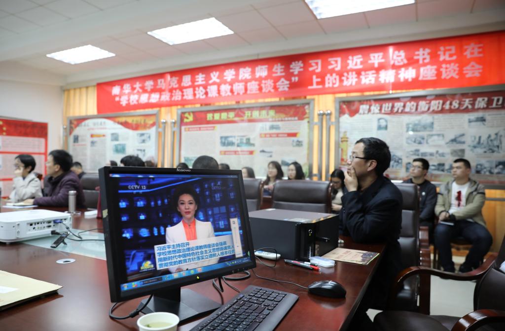 首先,大家集中学习观看了习近平总书记主持召开学校思想政治理论课教师座谈会的相关视频,观看中与会人员时时热烈反响,在认真学习领会座谈会上的重要讲话精神后,召开了座谈会,教师代表与研究生代表作了主题发言。