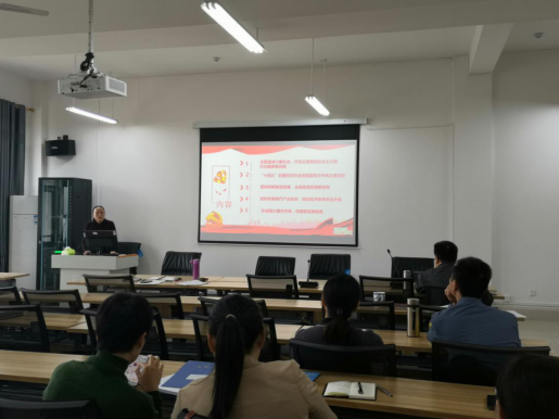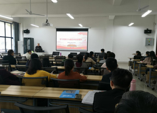 2020年11月6日上午,伟德betvlctor1946源于英国在雨母校区崇德楼418学术报告厅组织学习了党的十九届五中全会精神。院总支书记何小英作主题报告发言,全体教职工参加了此次学习。