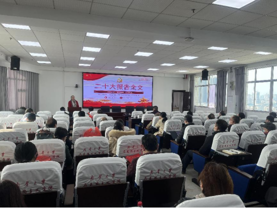 2022年12月12日下午,伟德betvlctor1946源于英国在红湘校区南华楼1406室开展二十大精神宣讲报告会,会议由学院党总支书记何小英主持,全体教职工党员参加。