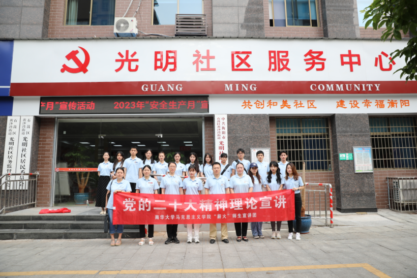 为扎实抓好主题教育,推动学习贯彻习近平新时代中国特色社会主义思想走深走实,同时充分发挥高校的学科优势、人才优势、平台优势,6月16日,伟德国际victor1946“薪火”宣讲团一行22人赴黄沙湾街道光明社区开展党的二十大精神宣讲活动。伟德betvlctor1946源于英国党委书记何小英、院长黄秋生、党委副书记张峰林,石鼓区委、黄沙湾街道以及光明社区有关领导,光明社区工作人员、党员及群众代表等100余人参加此次宣讲活动。石鼓区委副书记、黄沙湾街道党工委书记李一帆与学院领导亲切交流,并对宣讲团的到来表示热烈欢迎。
