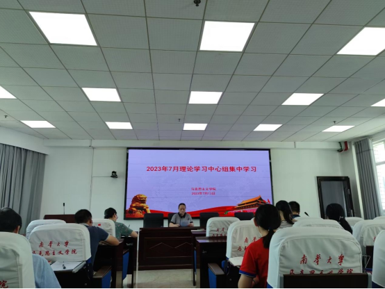 2023年7月13日下午3点,伟德betvlctor1946源于英国党委委员及各支部书记在南华楼1408会议室开展了2023年7月的中心组集中学习。此次学习的主题是深入学习贯彻习近平法治思想,认真学习领会习近平总书记关于民主法治和全过程人民民主的重要论述,深入实施学校“八五”普法规划,持续推进依法治校,大力推进学校治理体系和治理能力现代化。