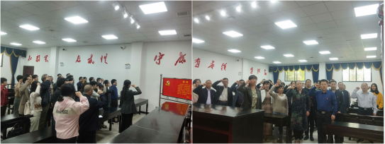 在萧石月陈列室廉政教育活动中心,面对鲜艳的党旗,何旭娟带领伟德betvlctor1946源于英国党总支部全体党员重温入党誓词,在铮铮誓言中体味入党时的庄严和激动,在鲜红党旗下接受心灵的洗礼和教育。
