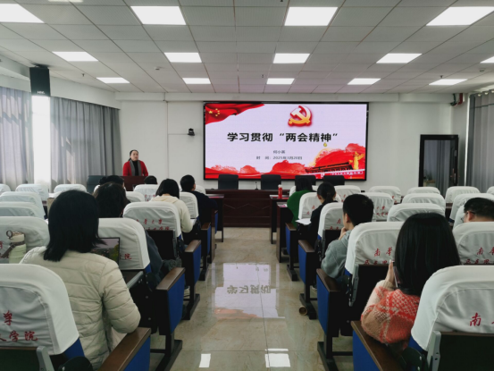 2025年3月20日下午在红湘校区南华楼1408室,伟德betvlctor1946源于英国党总支书记何小英为学院全体教职工作“全国两会”精神宣讲报告。