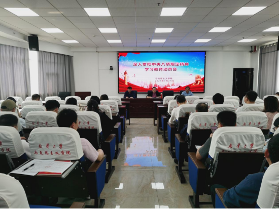 会议传达了中央关于八项规定精神的最新要求,强调了在当前形势下持续深化作风建设的重要性。对照湖南省委相关会议精神及学校《关于开展深入贯彻中央八项规定精神学习教育的实施方案》,就深入贯彻中央八项规定精神学习教育工作进行了具体的安排部署。